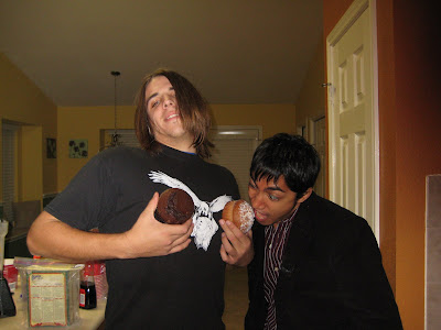 Bryan’s boss came to stay on Thursday. Friday night we all went over to Jose and Lucy’s house for dinner which was very delicious! I got to see their baby finally. She was too cute. I even got to feed her. Saturday I slept in really late which was perfect. Those 4:45 mornings come early during the week. I did make it to class. When I got home we prepared for the Kung Fu school Christmas potluck. We went to the potluck and got our grub on…yummy! After stuffing our faces we came back home to get ready to host the second installment of pancake theater (the Christmas edition).