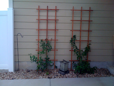 Bryan finally got our jasmine plants planted in the back yard. They can now make their way happily up the trellises. They look awesome and still smell great. I imagine they will look really great in a year.