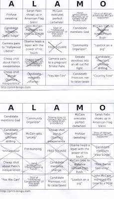 On Friday after my ceremony, Bryan and I met up with Ryon, Jason, and Amy to watch the presidential debates at the Alamo. It was definitely the best way to watch the showdown. We were able to stuff our faces with lots of yummies while the candidates clawed each others eyes out. I was pretty disappointed with the debate from both sides. Neither did a super job at explaining things. Mostly they just threw out numbers, quotes, and attacks I have no way of validating. At least they had this awesome bingo cards for us to play with. Check them out: